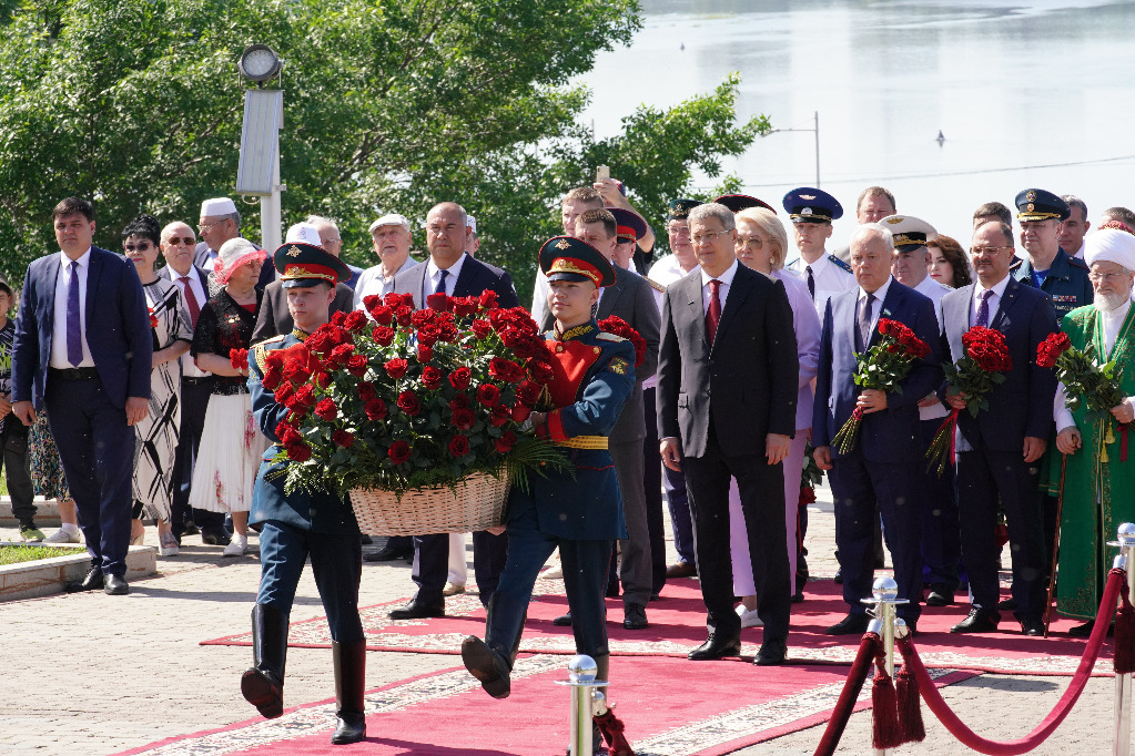 По традиции сегодня состоялись церемонии возложения цветов к Монументу Дружбы, к стеле «Уфа – город трудовой доблести» и к памятнику национальному герою Салавату Юлаеву.