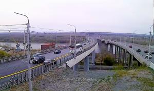 На старый Затонский мост запрещён въезд большегрузному транспорту. Его движение перенаправлено по крайней левой полосе нового моста во встречном направлении.