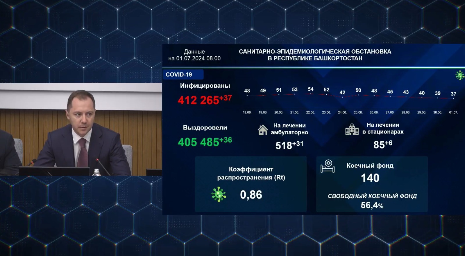 В Башкирии за последние сутки выявлено 37 случаев заболевания коронавирусной инфекцией. Об этом сегодня на оперативном совещании правительства в ЦУРе сказал министр здравоохранения республики Айрат Рахматуллин.